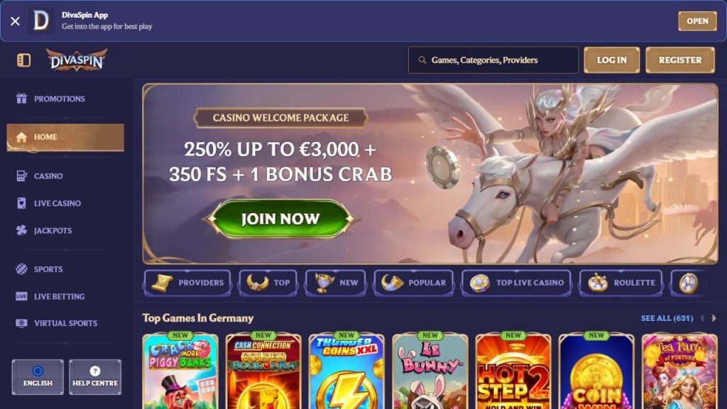 5. Divaspin – casino zonder Cruks met 11.000+ games en Spinoleague tot € 12.000.000